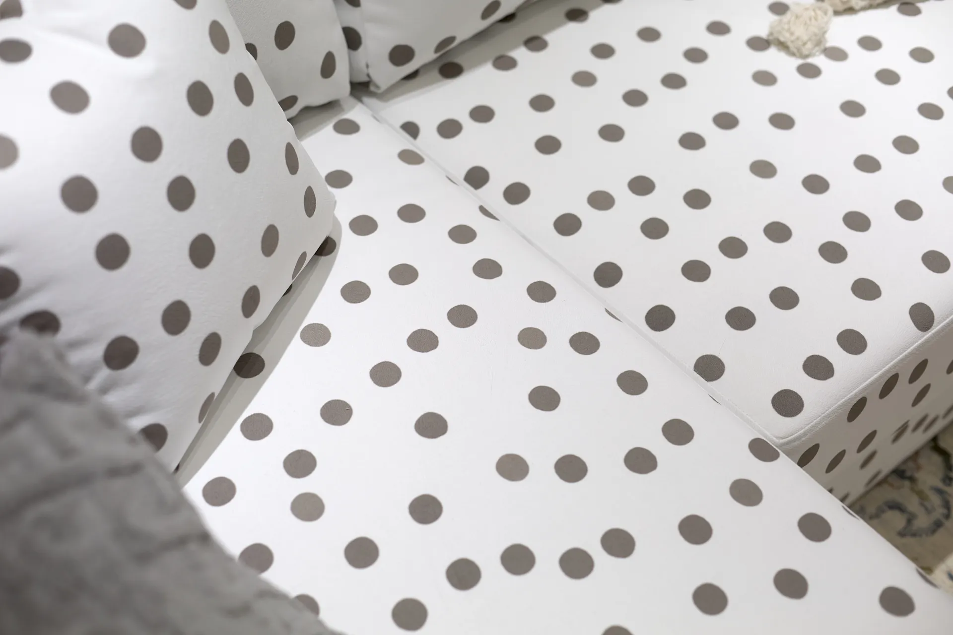Обновление гостиной стало для героев приятным подарком, который им решила сделать сестра Дмитрия. Источником вдохновения при создании интерьера стали кованые цветы, которые украшают решетку камина героев передачи. И важной частью гостиной, естественно, стал удобный диван в обивке в горошек, как элемент деревенского стиля в современном загородном пространстве.