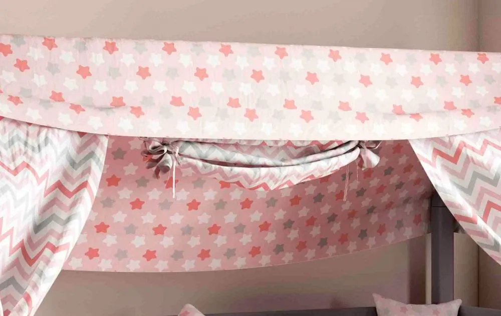 Все кровати «Соня» можно комплектовать аксессуарами из текстиля. Балдахин для кровати позволит создать ребенку уютный уголок, где можно как играть, так и хранить игрушки.