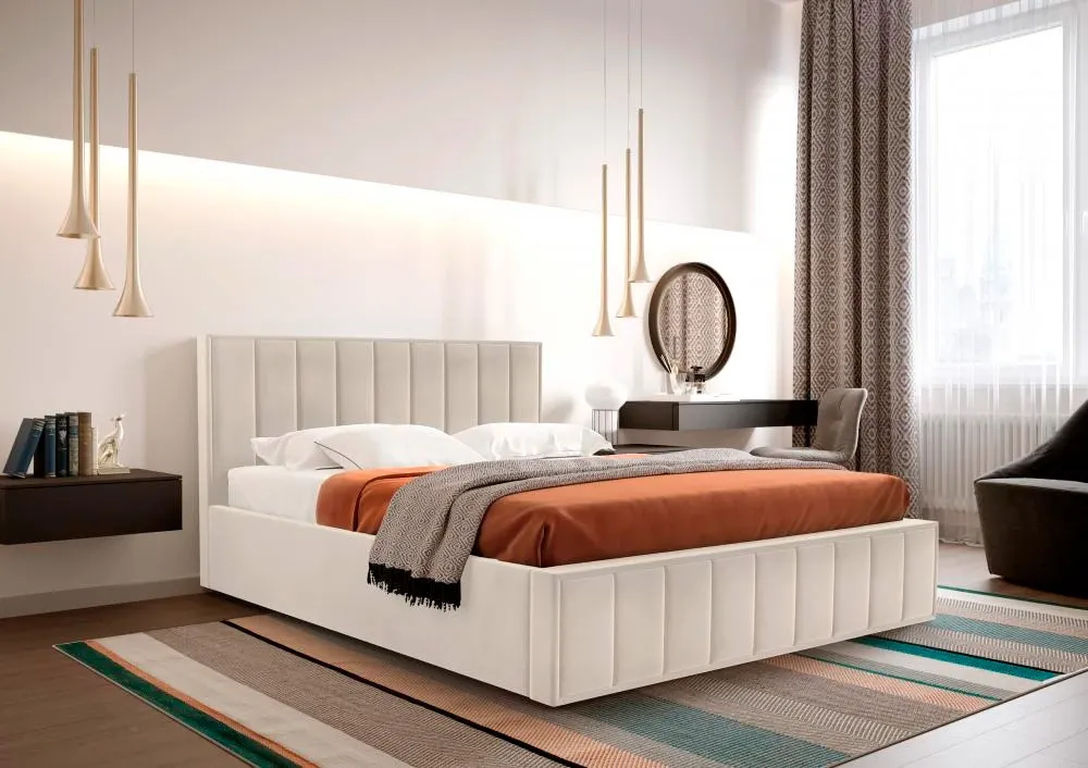 кровать может комплектоваться ортопедическим основанием на 5 опорах или бельевым ящиком с подъемным механизмом