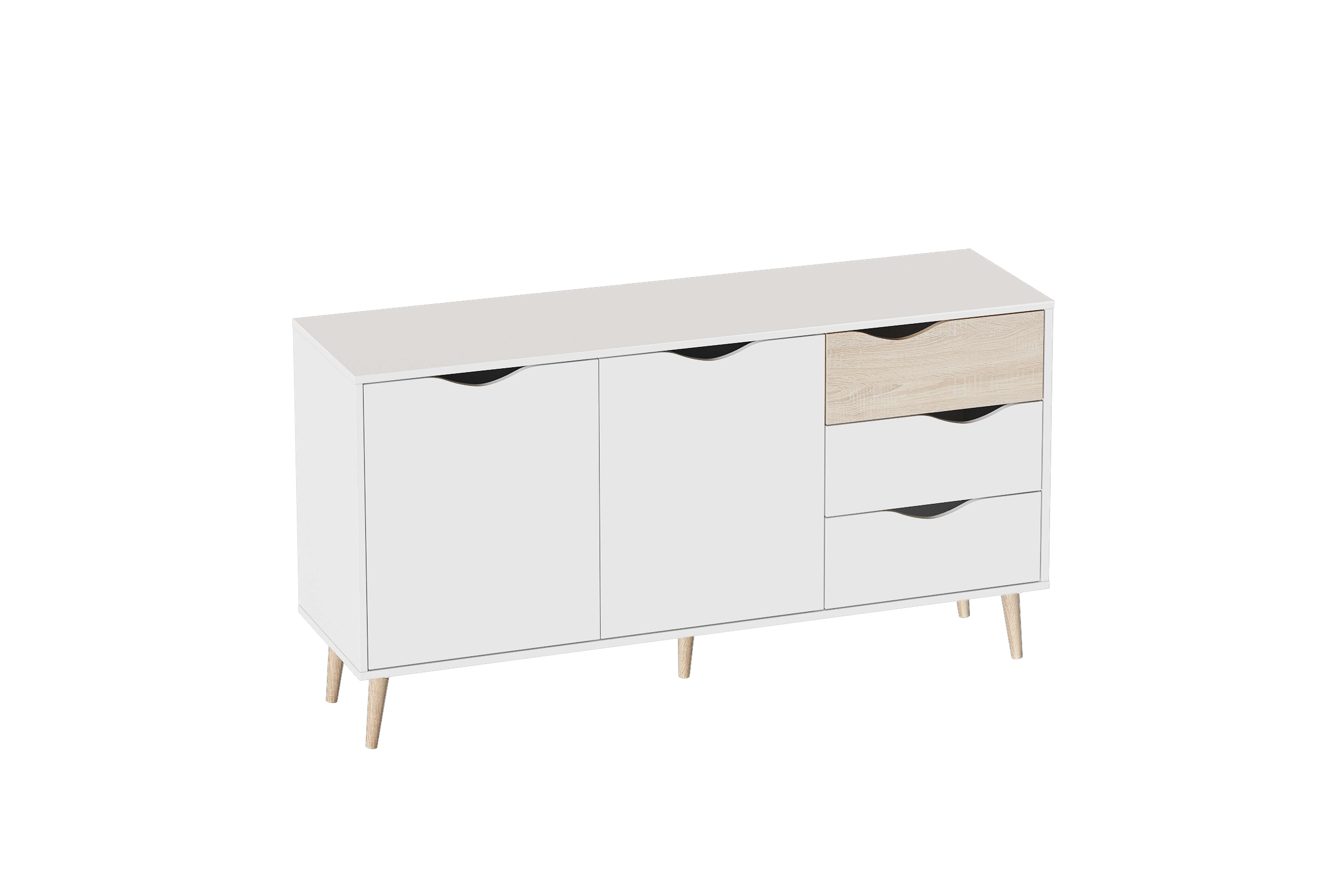 Серия «Соната» отличается простотой и натуральностью, выполнена в естественных тонах. В дизайне отчетливо улавливаются отсылки к скандинавской эстетике: чистые линии корпуса, использование белого цвета в отделке фасадов, расставленные в стороны высокие стильные опоры, выполненные из массива березы.