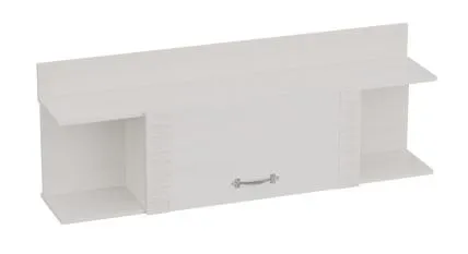 В полке имеются две боковые открытые ниши и центральная, закрытая дверцей. Дверца открывается вверх и удерживается в этом положении с помощью газовых кронштейнов.