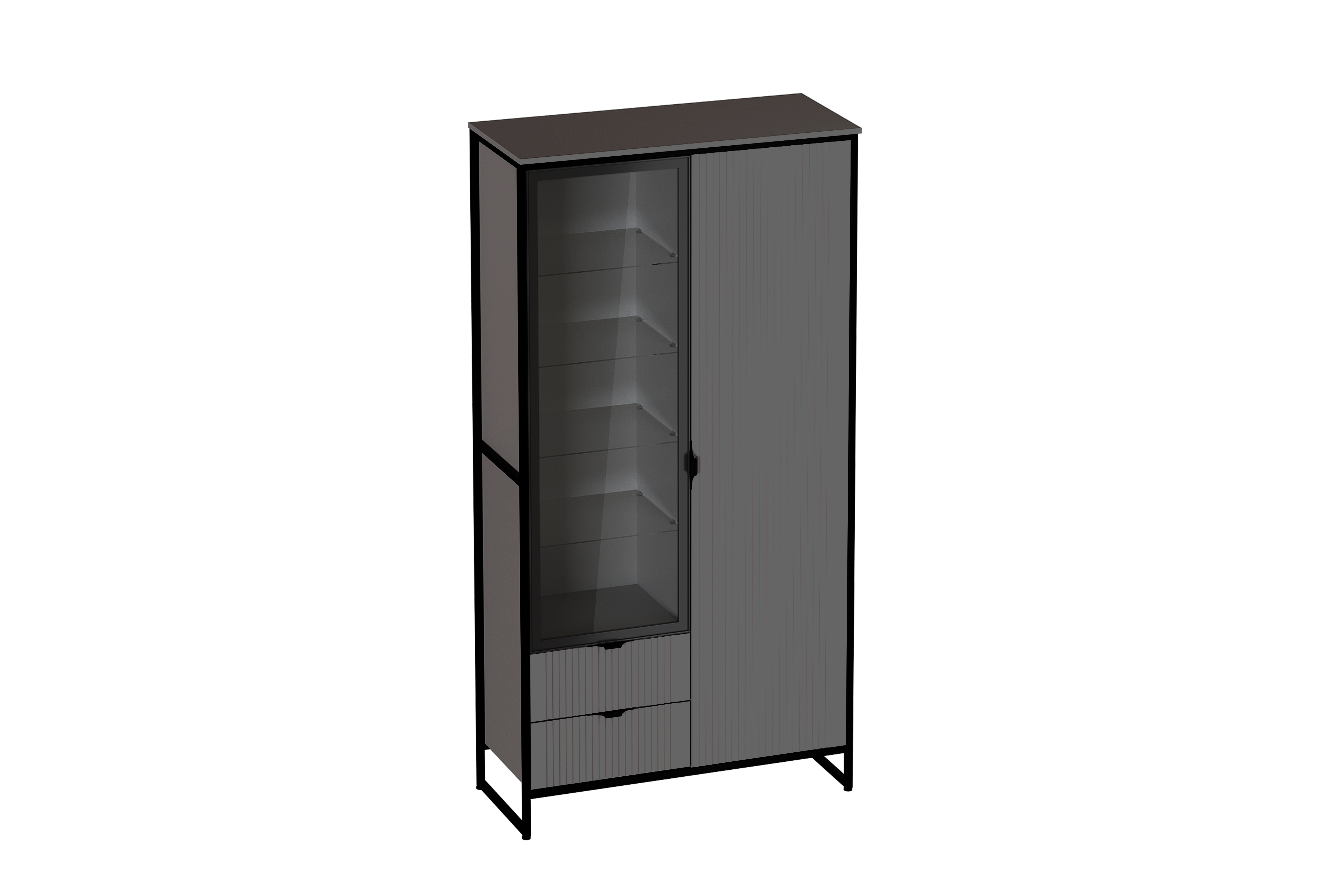 Шкаф выполнен в двух вариантах исполнения: Металл Бруклин / Графит и Персидский жемчуг / Персидский жемчуг.