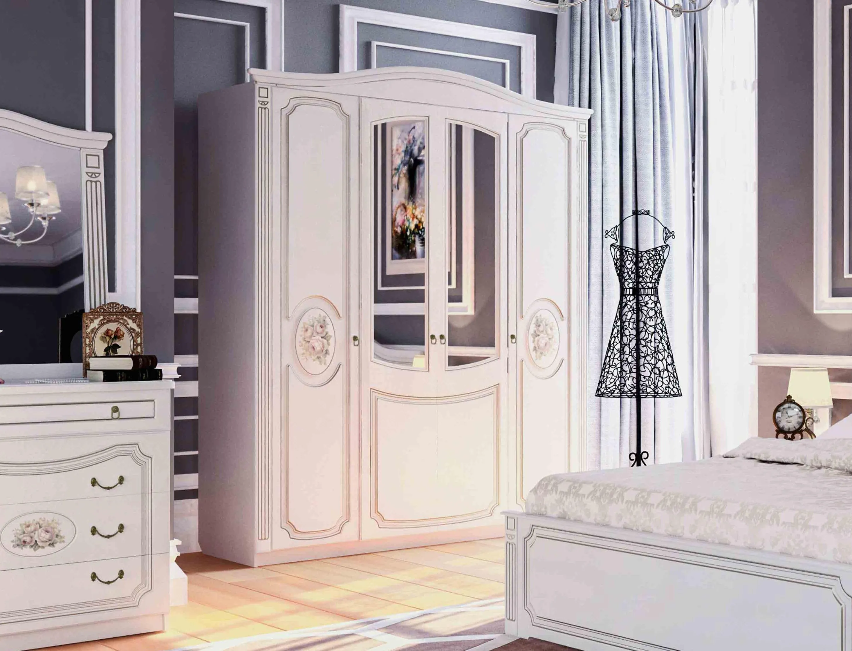 Четырехдверный шкаф "Верона" - это воплощение классики и изящества.