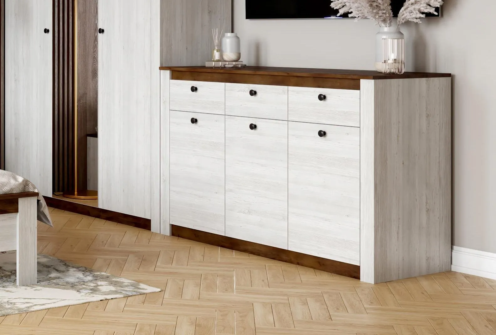 "Даллас" имеет три двери и три выдвижных ящика, что позволяет удобно хранить вещи и поддерживать порядок в комнате.