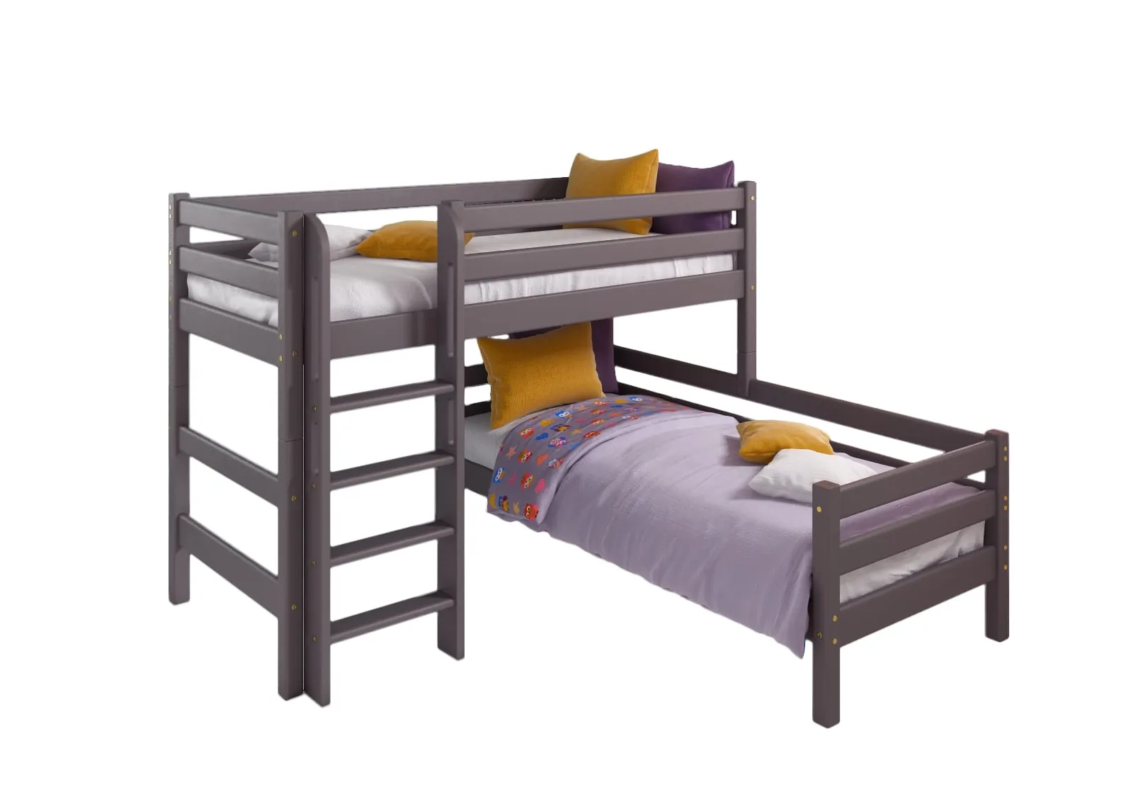 Вариант 7. Угловая кровать "Соня" с прямой лестницей — один из примеров идеального сочетания практичности, оригинальности и долговечности. Цветовое исполнение подходит сразу для нескольких стилей, а габариты — для комнат разной площади. Мебель для детской создается из безопасных материалов с отличной износостойкостью.